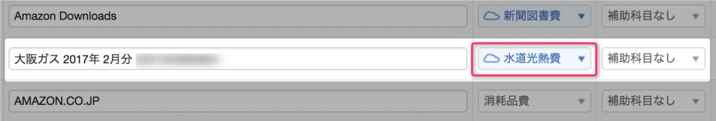 2月分のガス代の取引の勘定科目には雲マークがついたままですので、自動仕訳ルールから勘定科目が設定されたわけではありません。