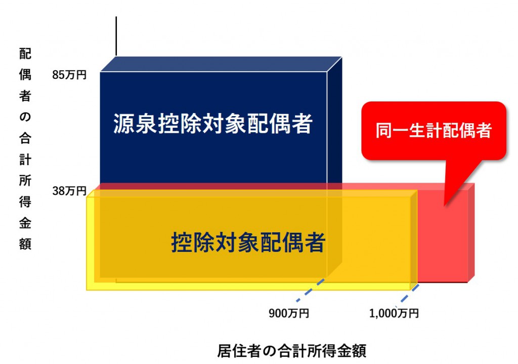このように満額の38万円(または48万円)の控除を受けられる居住者の配偶者のことを「源泉控除対象配偶者」といいます。