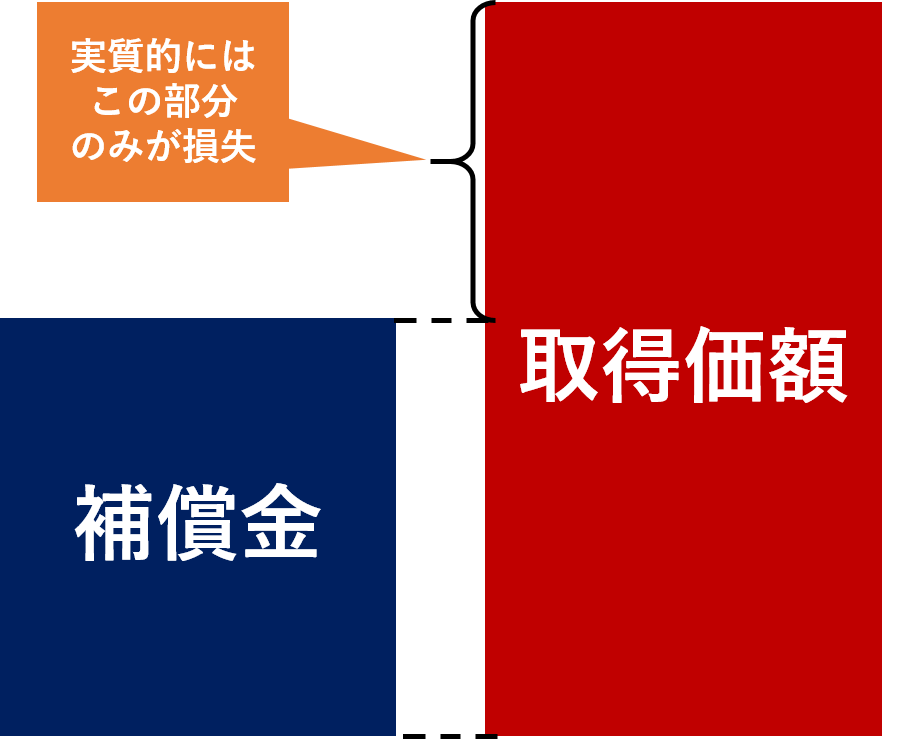 ただし、その取得価額相当額から受け取った補償金を差し引きます(マイナスの場合は0円です)。